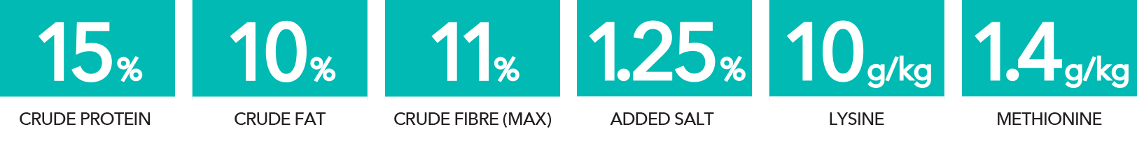 Steam Rolled and Micronised Barley, Maize, Lupins, Beans, Black Sunflower Seeds. Lucerne, Molasses, Vegetable Oils, Salt, Calcium Carbonate, Di-Calcium Phosphate, Potassium Chloride, Magnesium Oxide, FeedRite Vitamin and Trace Mineral Premix (with Bio-Available Organic Trace Minerals), Lysine, Yeast Products, Choline Chloride, Vitamin C.